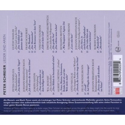 Deze uitgave op BERLIN CLASSICS met muziek van NA wordt uitgevoerd door Peter Schreier. Dit prachtige artikel is nu verkrijgbaar op Klassiek.nl