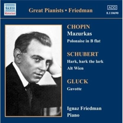 Deze uitgave op NAXOS HISTORICAL met muziek van Chopin/Schubert/Gluck wordt uitgevoerd door Friedman,Ignaz. Dit prachtige artikel is nu verkrijgbaar op Klassiek.nl