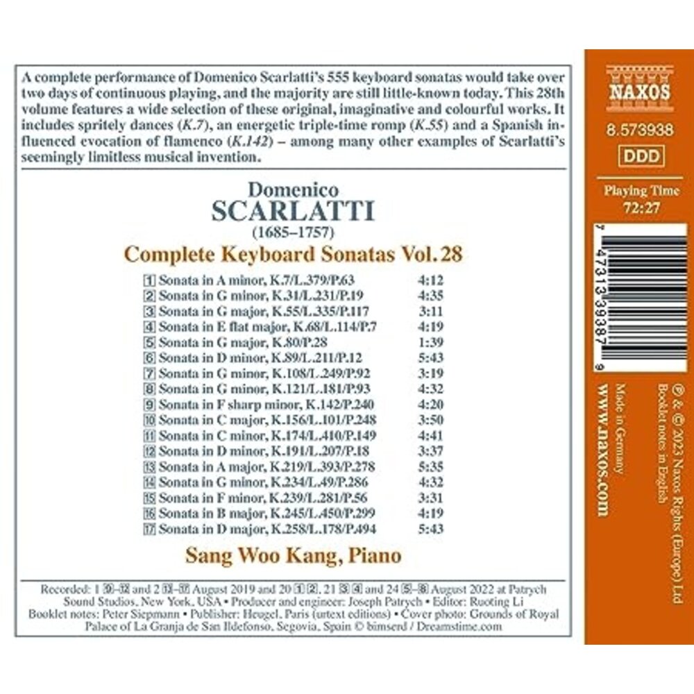Dit 28e deel in de serie bevat opnieuw een selectie van Scarlatti's originele, fantasierijke en kleurrijke werken. Pianist Sang Woo Kang is een actief kamermusicus, concertsolist en recitalist wiens Naxos album met Mozart's fuga's, rondo's en fantasieën lovende kritieken ontving bij de release in december 2014.