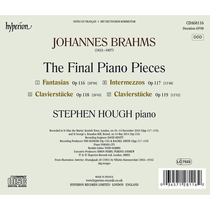 Deze uitgave op HARMONIA G - O HYPERION met muziek van Brahms, Johannes wordt uitgevoerd door Stephen Hough. Dit prachtige artikel is nu verkrijgbaar op Klassiek.nl