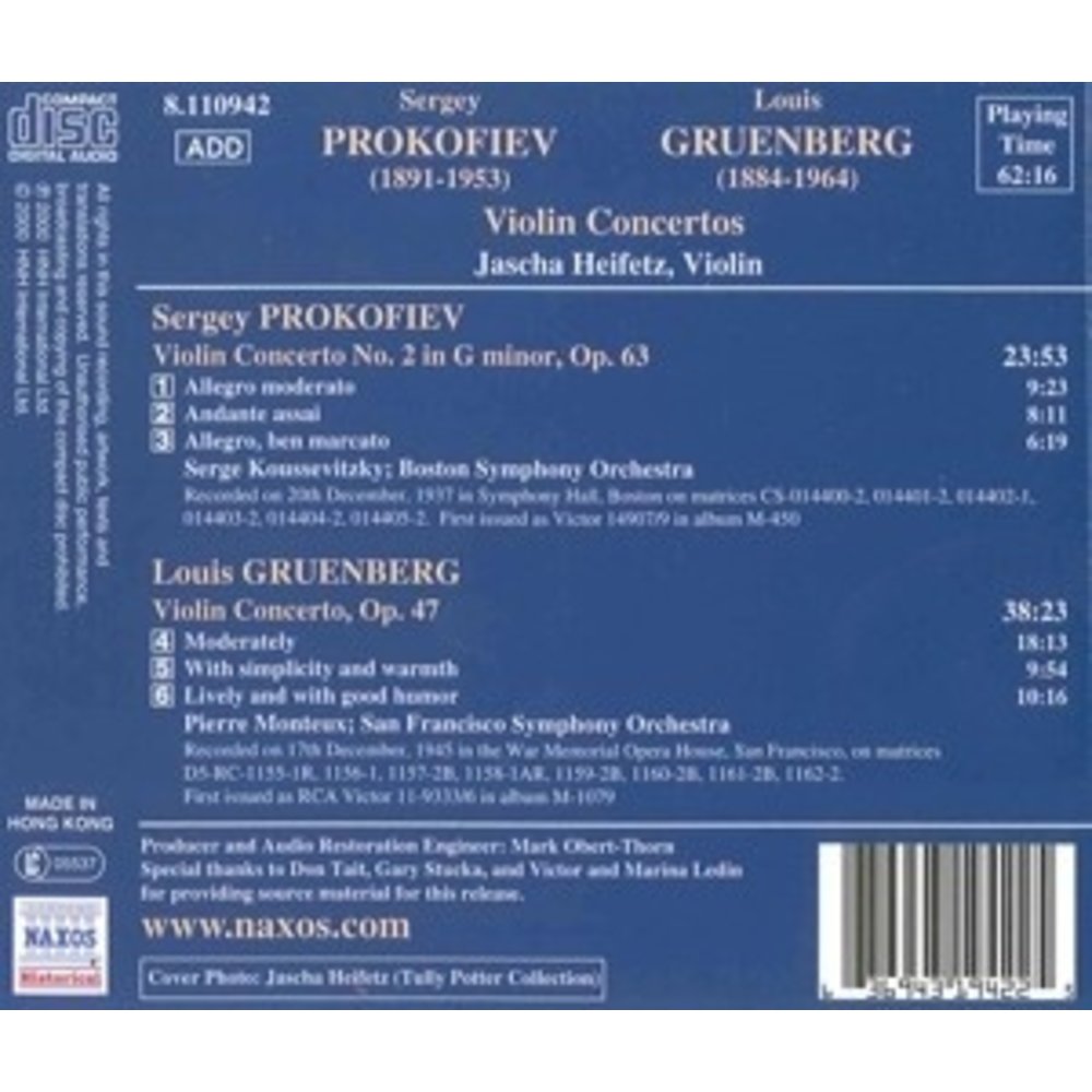 Deze uitgave op NAXOS HISTORICAL met muziek van Prokofieff/Grunberg wordt uitgevoerd door Heifetz,Jascha/Koussevitzky/Mo. Dit prachtige artikel is nu verkrijgbaar op Klassiek.nl