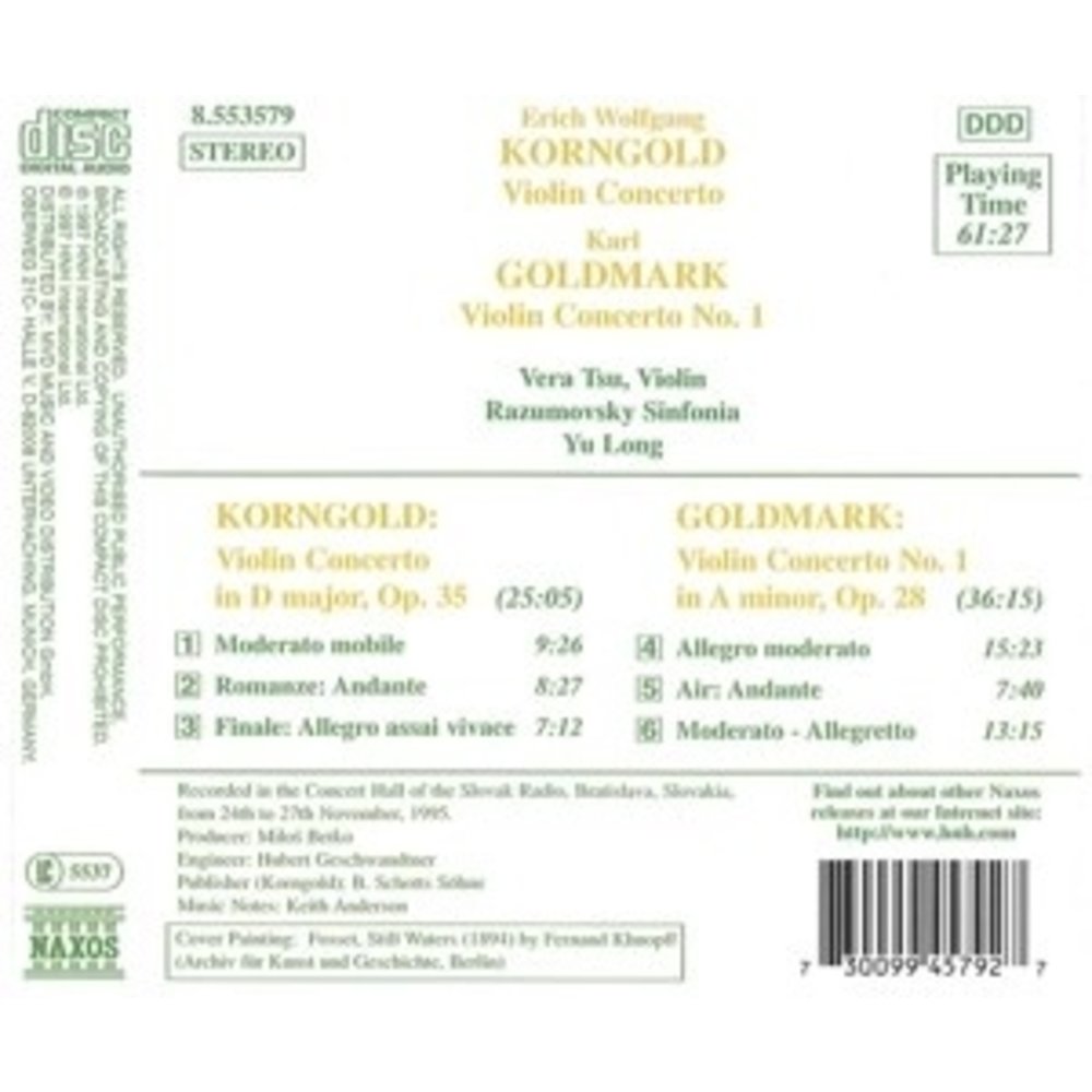 Deze uitgave op NAXOS met muziek van Korngold,E. W./Goldmark,K. wordt uitgevoerd door Tsu,V./Long,Y./Rasumowsky Sinf. Dit prachtige artikel is nu verkrijgbaar op Klassiek.nl