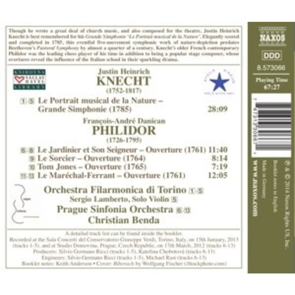 Deze uitgave op NAXOS met muziek van Knecht . Philidor wordt uitgevoerd door Orchestra Filarmonica Di Torino, Prague Sinfonia O. Dit prachtige artikel is nu verkrijgbaar op Klassiek.nl