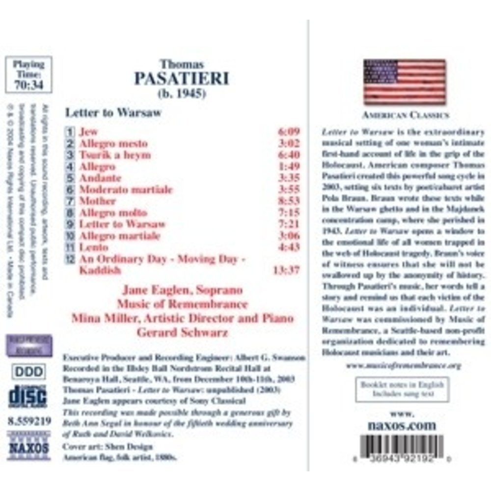 Deze uitgave op NAXOS met muziek van Pasatieri,Thomas wordt uitgevoerd door Eaglen/Schwarz/+. Dit prachtige artikel is nu verkrijgbaar op Klassiek.nl