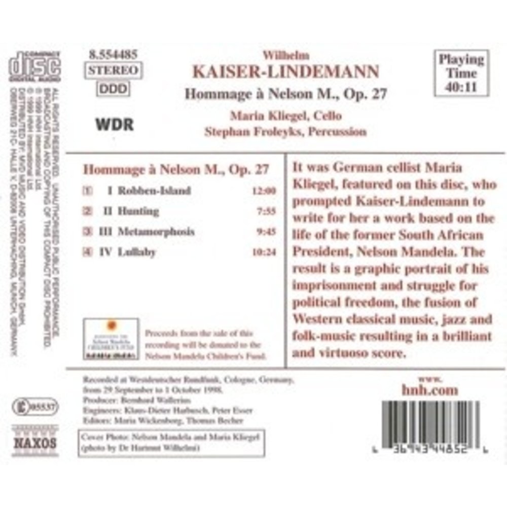 Deze uitgave op NAXOS met muziek van Kaiser-Lindemann,Wilhelm wordt uitgevoerd door Kliegel,Maria/Froleyks,Stephan. Dit prachtige artikel is nu verkrijgbaar op Klassiek.nl