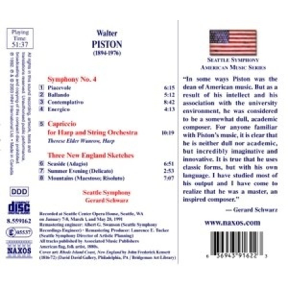 Deze uitgave op NAXOS met muziek van Piston,Walter wordt uitgevoerd door Schwarz,Gerard/Seattle Symphon. Dit prachtige artikel is nu verkrijgbaar op Klassiek.nl