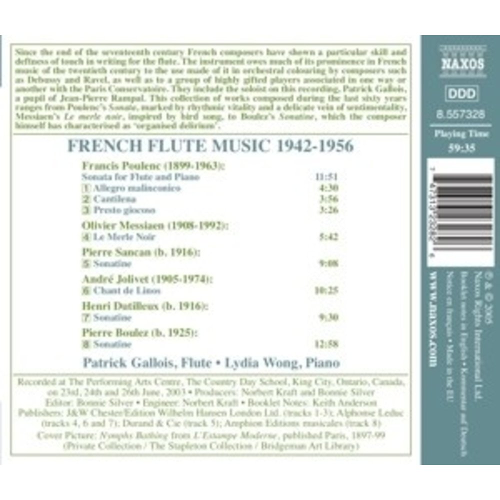 Deze uitgave op NAXOS met muziek van Poulenc/Messiaen/Dutilleux/+ wordt uitgevoerd door Gallois,Patrick/Wong,Lydia. Dit prachtige artikel is nu verkrijgbaar op Klassiek.nl