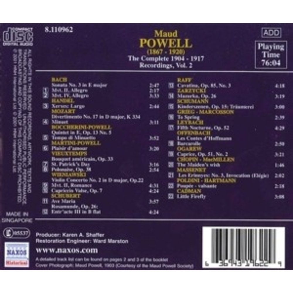 Deze uitgave op NAXOS HISTORICAL met muziek van Powell,Maud/Falkenstein,George wordt uitgevoerd door Powell,Maud/Falkenstein,George. Dit prachtige artikel is nu verkrijgbaar op Klassiek.nl