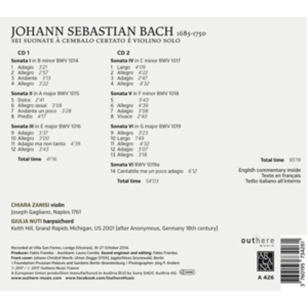 Deze uitgave op ARCANA met muziek van Bach, Johann Sebastian wordt uitgevoerd door Zanisi, Chiara / Nuti, Giulia. Dit prachtige artikel is nu verkrijgbaar op Klassiek.nl