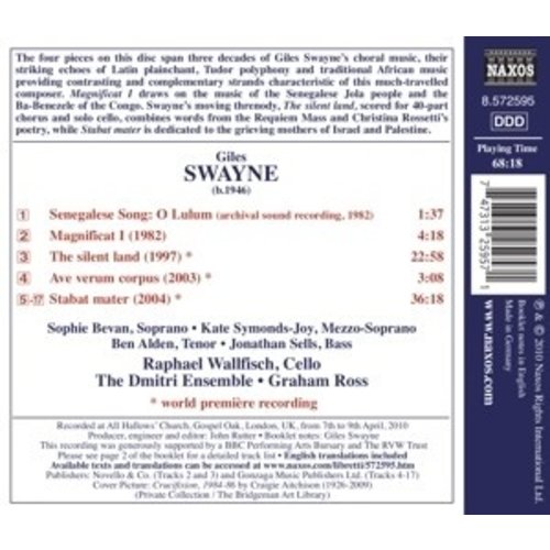 Deze uitgave op NAXOS met muziek van Swayne,Giles wordt uitgevoerd door Wallfisch/Dmitri Ensemble/Ross. Dit prachtige artikel is nu verkrijgbaar op Klassiek.nl