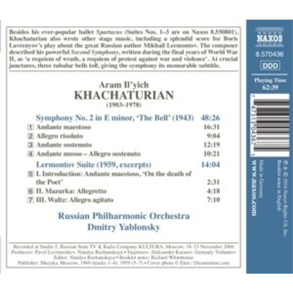 Deze uitgave op NAXOS met muziek van Khachaturian,Aram Il'ych wordt uitgevoerd door Russian Philharmonic Orchestra/Yablonsky,Dmitry. Dit prachtige artikel is nu verkrijgbaar op Klassiek.nl