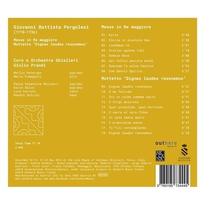 Nieuw licht op Pergolesi! Dit album belicht een minder bekend aspect van de grote Italiaanse componist en biedt twee meesterwerken in hun eerste moderne uitgave en tevens eerste opname: de Mass in D-major en het motet Dignas Laudes. Beide versies zijn het
