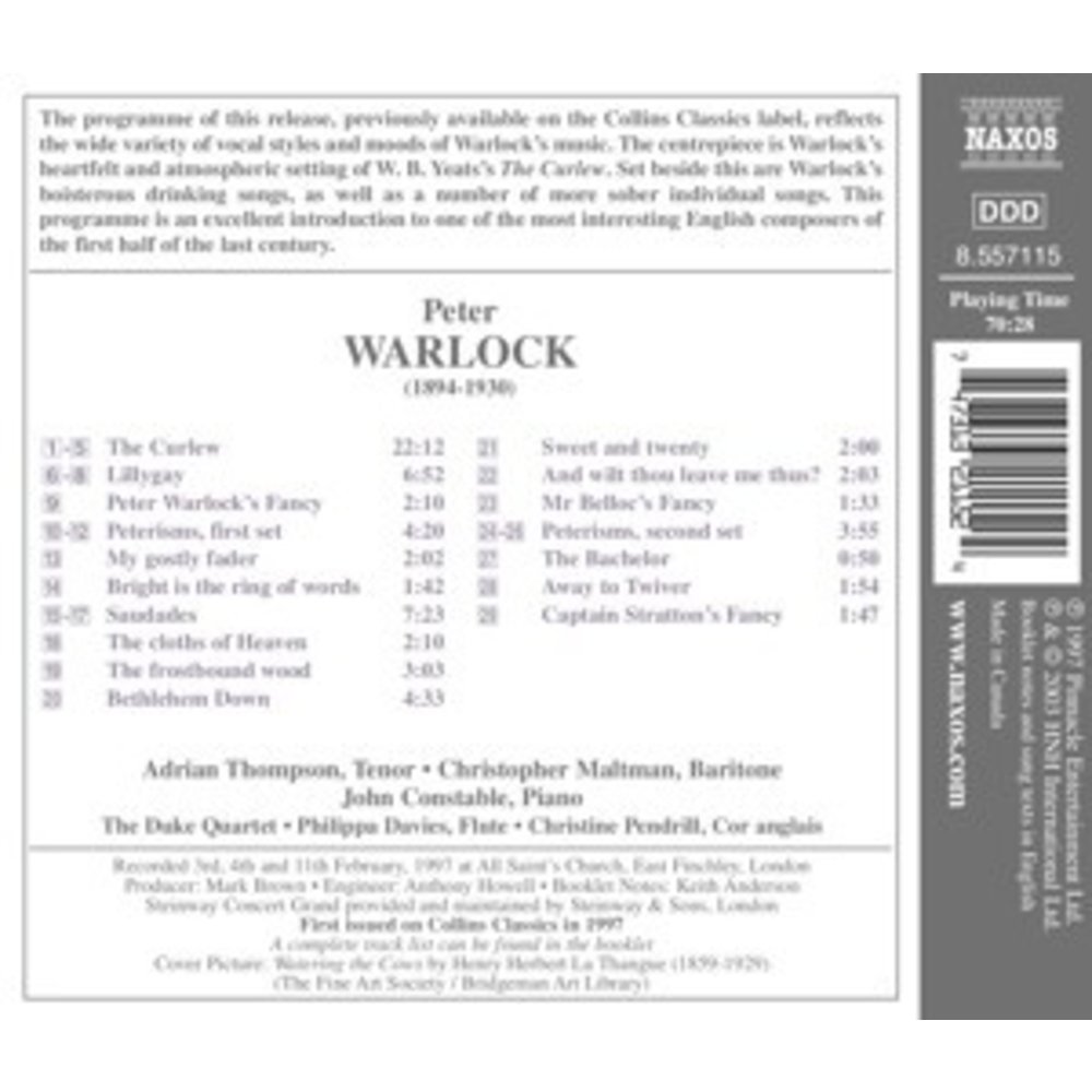 Deze uitgave op NAXOS met muziek van Warlock,Peter wordt uitgevoerd door Thompson/Maltman/Constable/+. Dit prachtige artikel is nu verkrijgbaar op Klassiek.nl