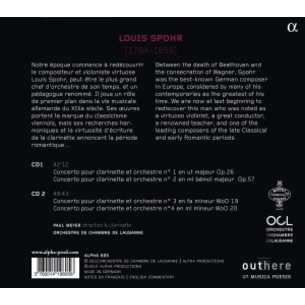 Deze uitgave op ALPHA met muziek van Louis Spohr wordt uitgevoerd door Paul Meyer/ Orchestre De Chambre De Lausanne. Dit prachtige artikel is nu verkrijgbaar op Klassiek.nl