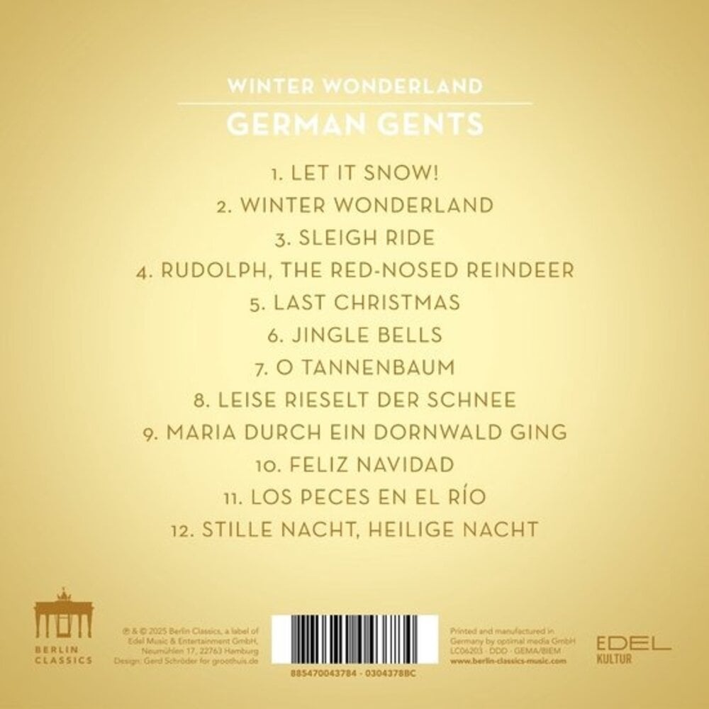 German Gents: Winter Wonderland is een CD die in 2025 verschijnt en wordt uitgevoerd door het gelijknamige Duitse vocale ensemble German Gents. De platenmaatschappij Berlin Classics, onderdeel van EDEL Music & Entertainment GmbH, staat garant voor de release van dit album. Het ensemble, bestaande uit vier mannelijke zangers, richt zich op een gevarieerd programma van kerstmuziek waarin traditionele Duitse en internationaal bekende melodieën centraal staan.